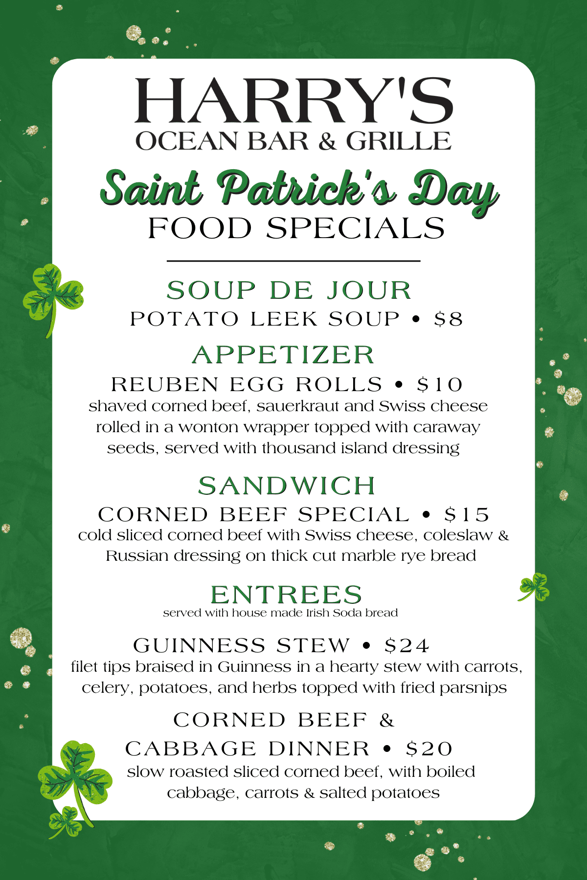 Harry’s Cape May Spring Specials: St. Patrick’s Day Menus